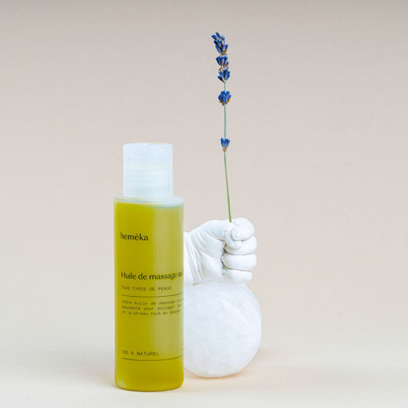 C’est pour cette raison que l’huile de massage hemēka® possède une texture onctueuse, parfaite pour profiter d’un massage nourrissant et revitalisant.
