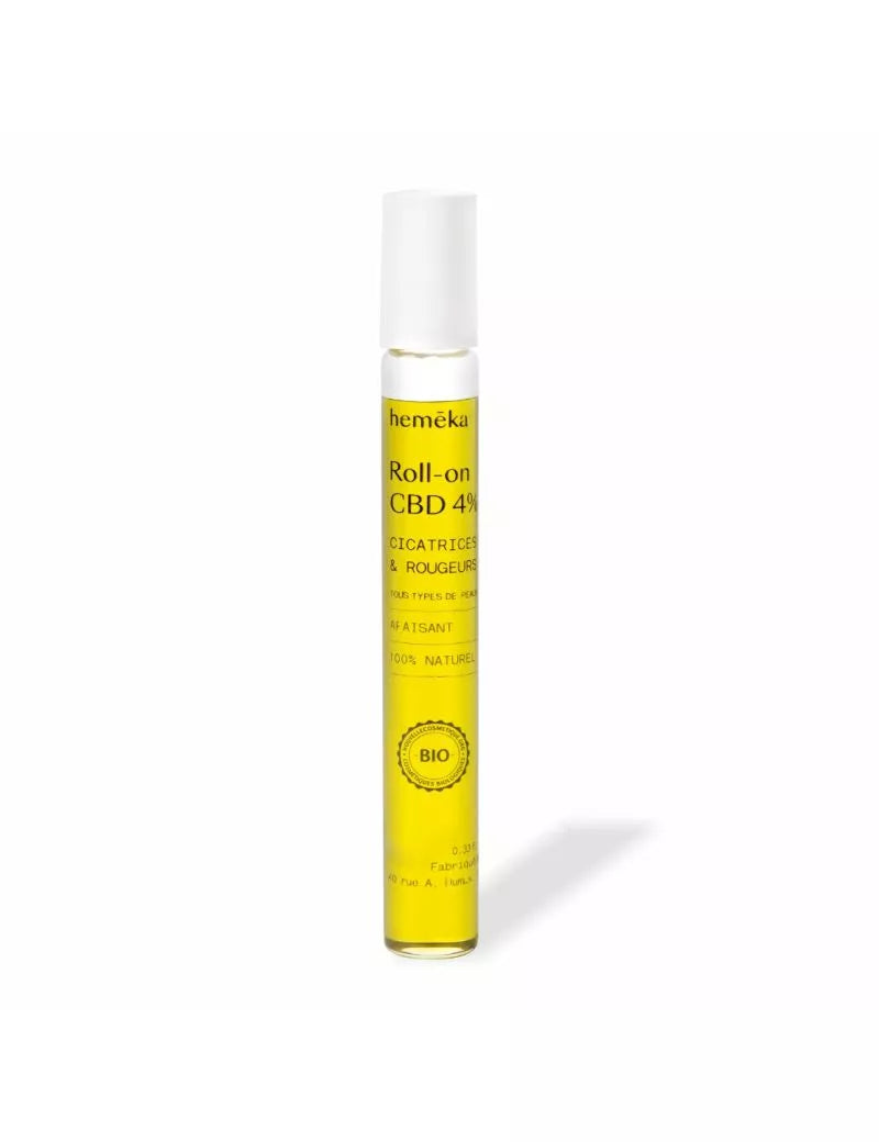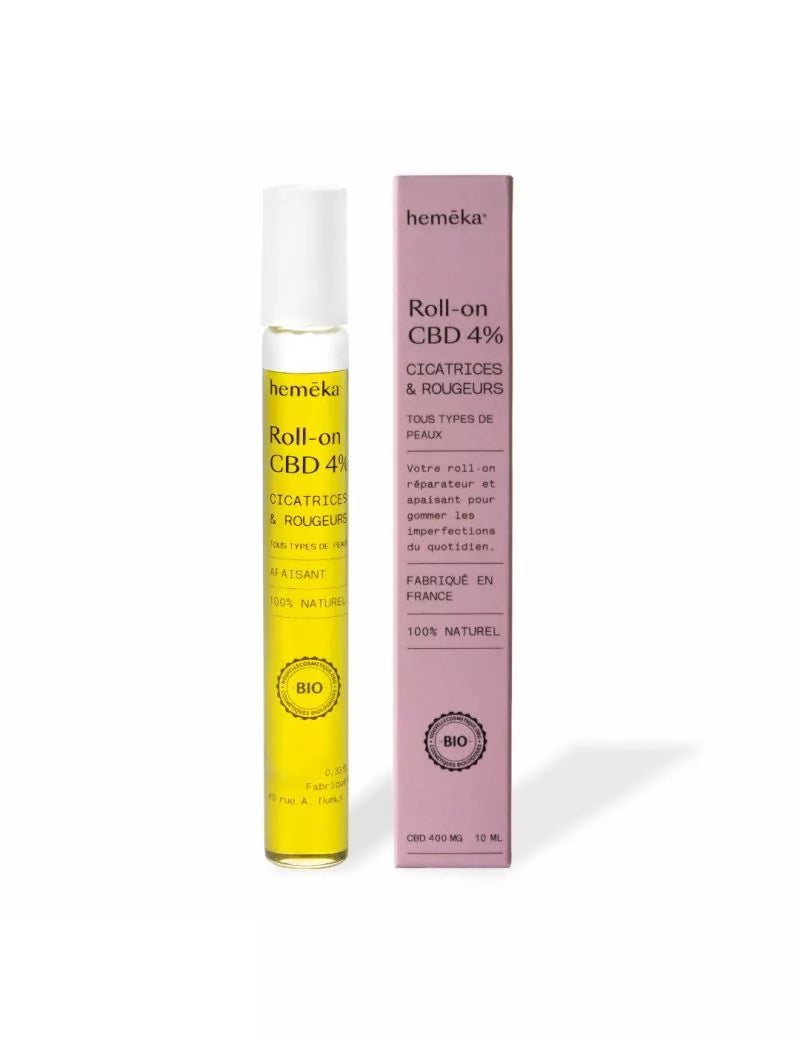 Découvrez un roll on au CBD pour cicatrices & rougeurs, fabriqué à base d'huile de graines de chanvre bio riche en oméga-6 et oméga-3, doté d'une forte teneur en CBD (4%) et enrichi en huiles essentielles favorisant la cicatrisation.